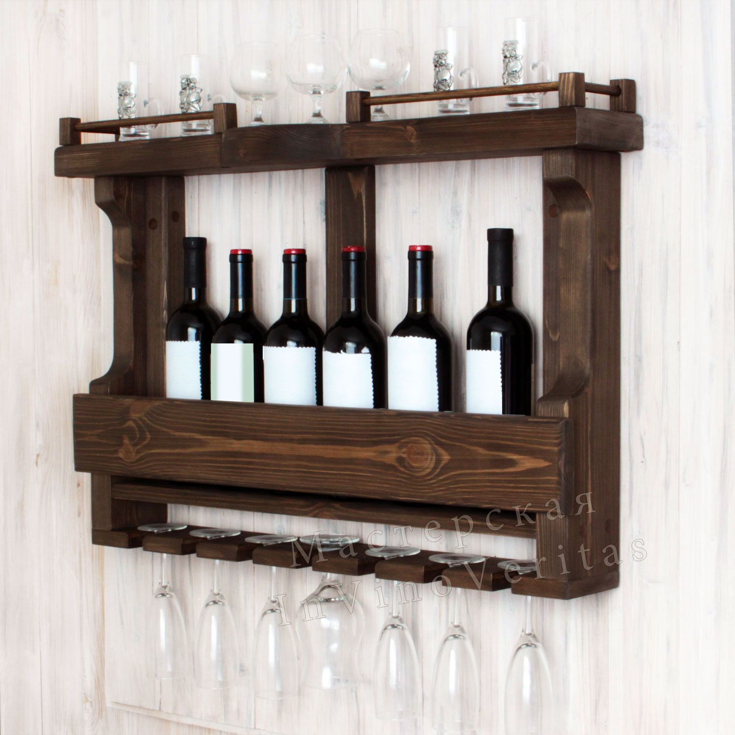 Полка вмещает 7 бокалов для вина и 6-7 бутылок.